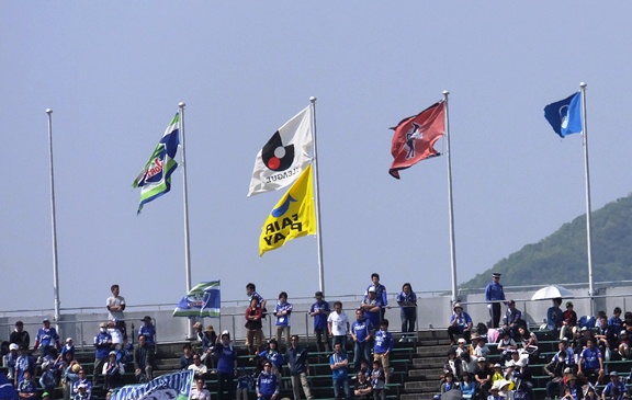 青一色の敵中ではためくクラブフラッグのためにも、ピッチとゴール裏必死でがんばります。