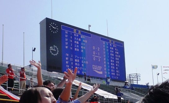 得点してしばし喜び合って大騒ぎなので電光掲示板でご確認。