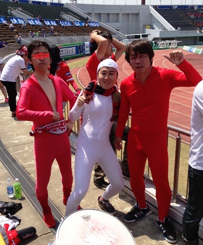 HTいっぱいこちらのゴール裏で楽しませてくれたヴォルタくん。最後にお腹を披露。やっぱりお腹は日焼けしてない!(笑)
