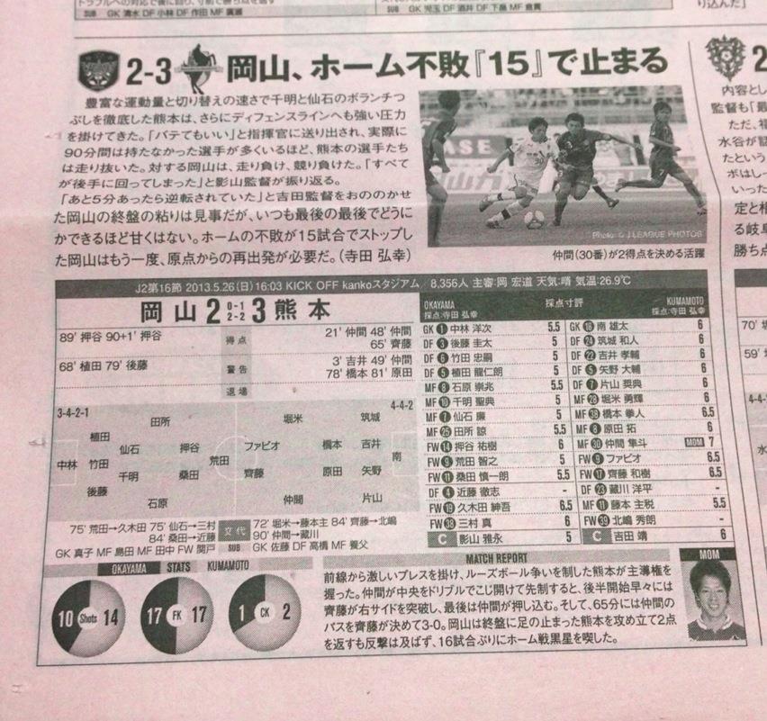 2日遅れのエルゴラッソ。岡山は反撃の遅さを悔いてます。そしてこの新聞でMOMに選ばれるのはすごく嬉しい。