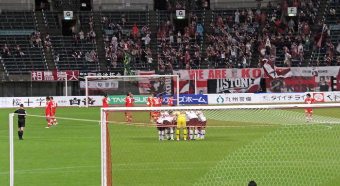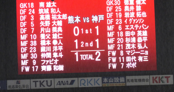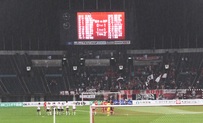 向こう側で神戸が攻め込み熊本が防戦のまっただ中でひときわ高い主審の笛。