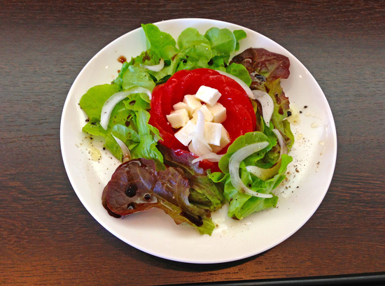 トマトは皮を湯剥きしてのスライス。とても食べやすくてシンプルな味付けが美味しいのです。
