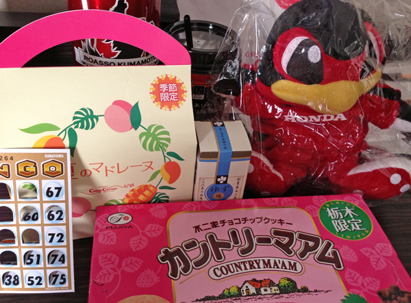栃木でご一緒した皆様からのわらしべです。右上のマスコットはホンダFCのパッサーロくん。真っ赤な鳥さんなので今度うまスタに連れて行こうかな♪