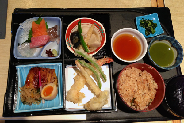 羽田でお昼。もちろん今日だけは贅沢に祝勝の膳。