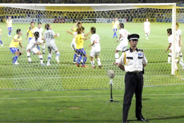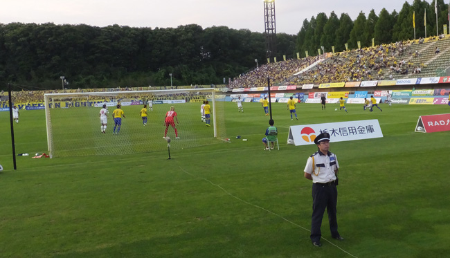 当然嵩にかかってホームの栃木が攻め込んでくるから、後半だってユウタくんは大忙し。クールなのは私らを見張ってる警備員さんだけ。