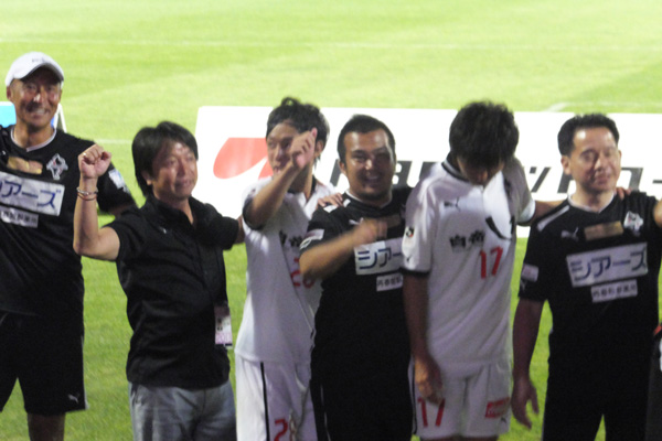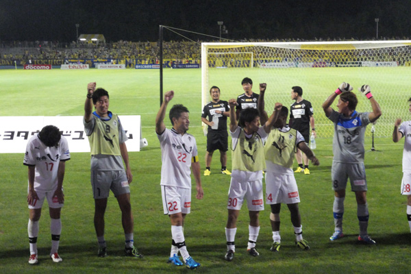 防戦一方でやきもきしまくっていたロアッソゴール裏は、その場で花火が打ち上がったような狂喜乱舞。