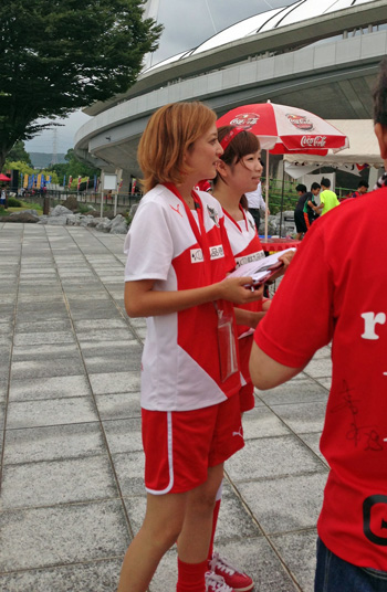 どうした13番。ピッチに立ってるはずじゃないのか。こんなとこでサインしてる場合じゃないよっ♪