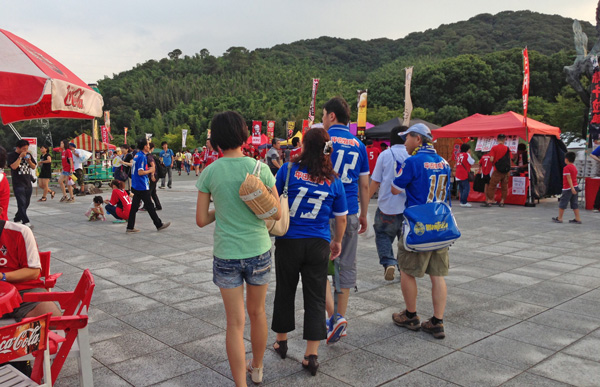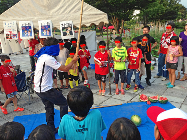 北ゲート脇ではお祭り広場でスイカ割り中。「右だよー左だよー」と指令してたのはパブロくん。