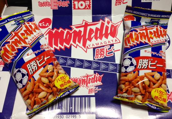 昨年の遠征で、アウェーゴール裏の売店で見つけて箱買いしたモンテディオの勝ピーをお土産にいただきました。大好きなので嬉しかった♪ どうもありがとうございます!