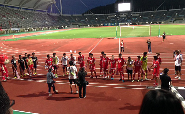 10人となった赤馬衆は、しかし11人の時よりも明らかに活性化して、一人一人のプレーに90分近く戦ってきた選手とは思えない必死さが滲み出てきました。それは見ていてもはっきりわかった。