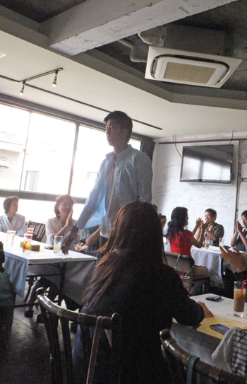 くじ引きで私たちのテーブルに来てくれました。でっかくて爽やかでお話上手いです。天皇杯での活躍だけでなく、プロの選手としても去年の壮行会からすごく成長しています。期待大!