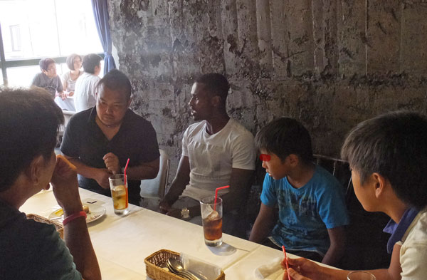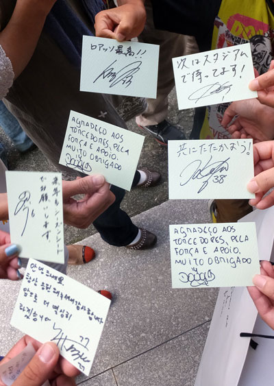 お隣ではドゥグくんが通訳さんを交えて交流中。近くで見るとブラジル人とは思えないほど華奢な印象。ご飯ちゃんと食べてるかオバサポはそのへんが心配です(^_^;)