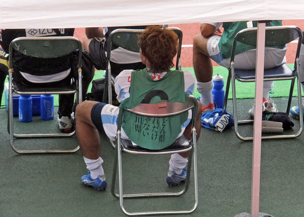 後半途中交代してベンチに戻ってきたキジさん。自分で椅子引っ張ってきてドッカリ。