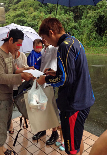 試合後はこれまた久方ぶりの出待ち。ロアッソの出待ちはほとんどやらないけど、今回ばかりはこの時を逃すと次にいつ彼らに会えるかわからないので、ベテラン出待ちストの皆さんにくっついてミッション遂行(^_^;)