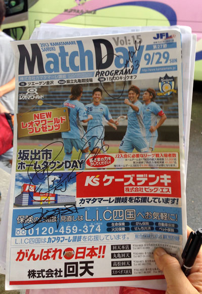 ミッション完了して一部いただいた前節の讃岐のMDP。この写真のメンバーのユニが赤くないのが不思議です。