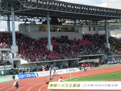 暑さはあまり感じなかったけど天気も良くなり、水前寺スタはこの大入り。