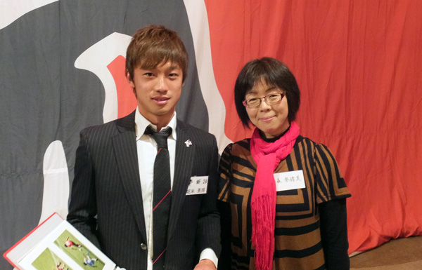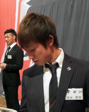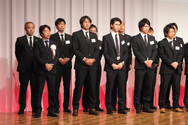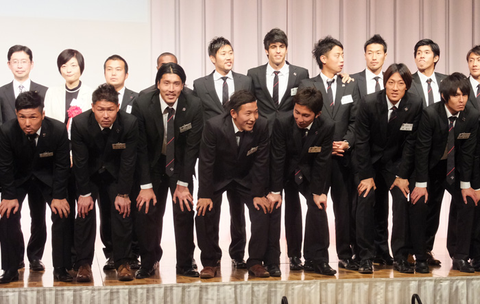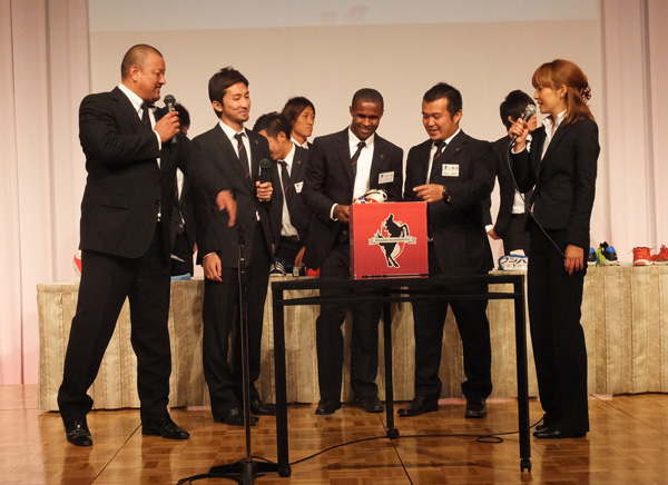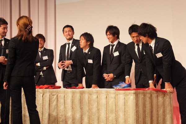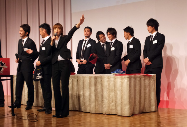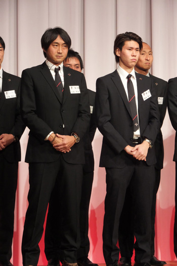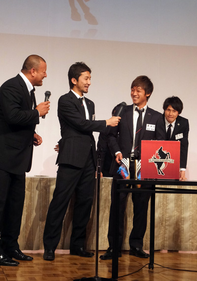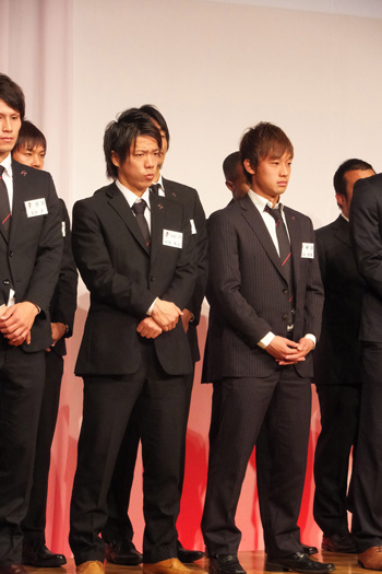 ところで、背番号順にステージに上がった選手のグループで一番落ち着きがなかったのがこの人たち。
