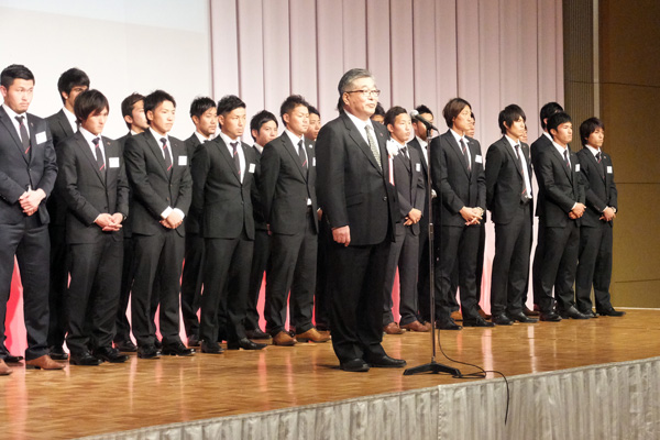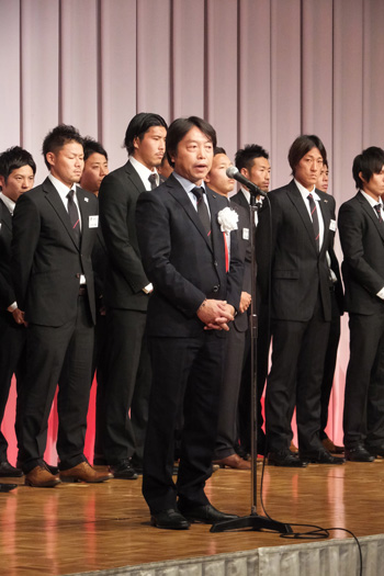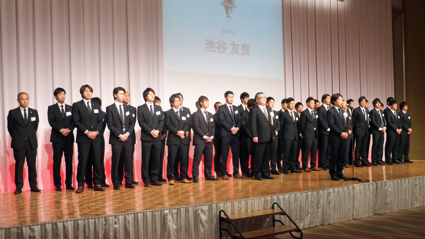 開会の挨拶。会長も監督代行も反省の言葉が並ぶ挨拶でした。それでもこの成績で単年度黒字は評価できると思います。営業部門の努力に敬意を表したいです。