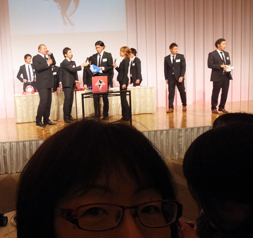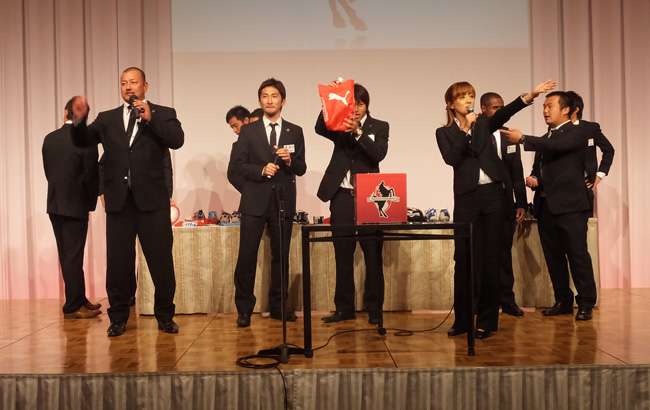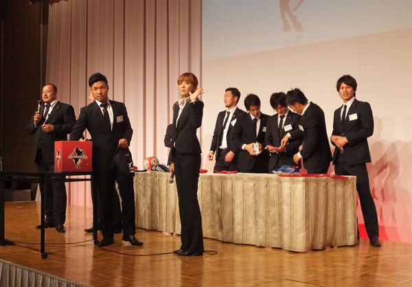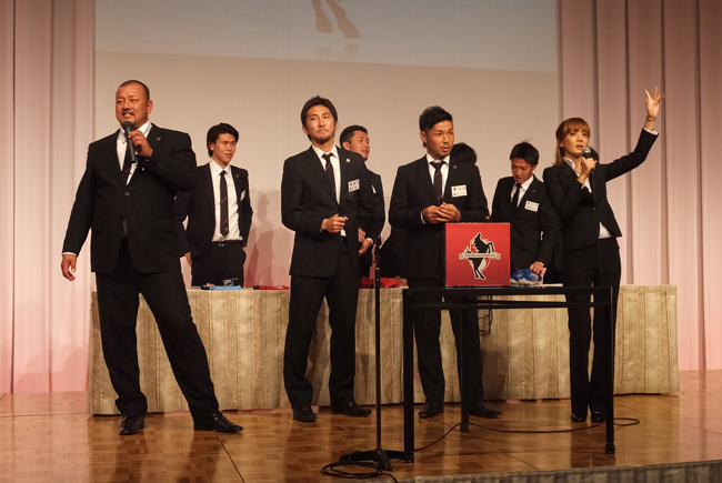 メインイベントの抽選会。これ飲み食いや選手と触れ合う最中にやってるもんだから、当選番号発表しても聞こえてない人は出て来ないのよねー。