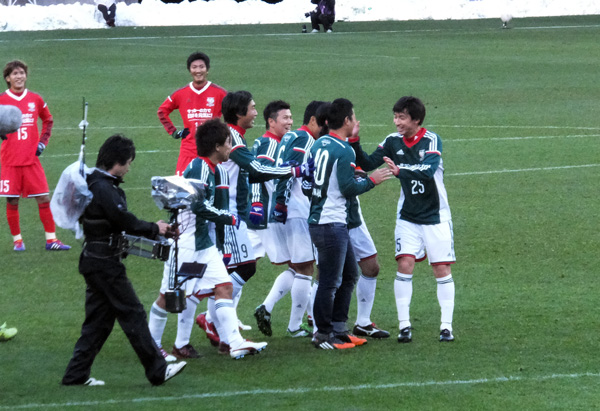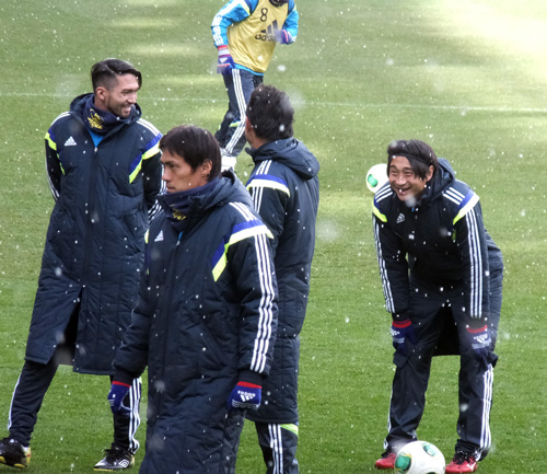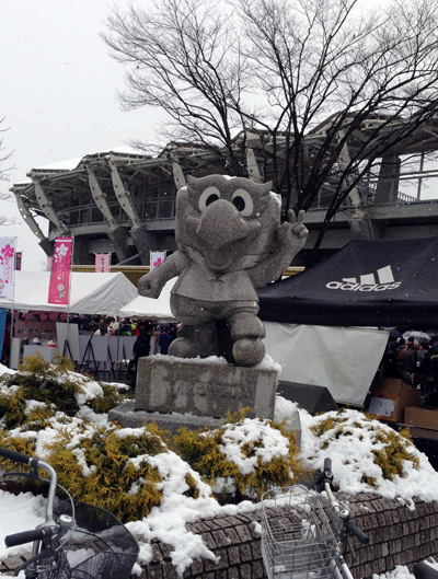 残雪踏みながら応援なんてのも九州では体験できないこと。