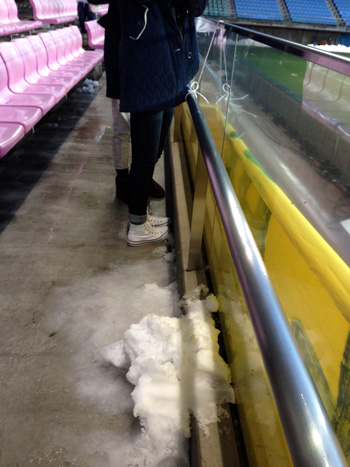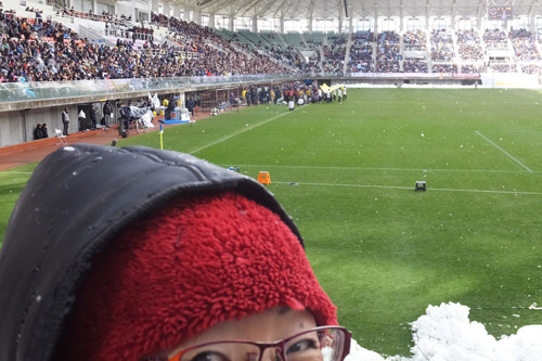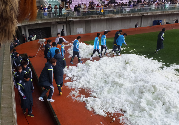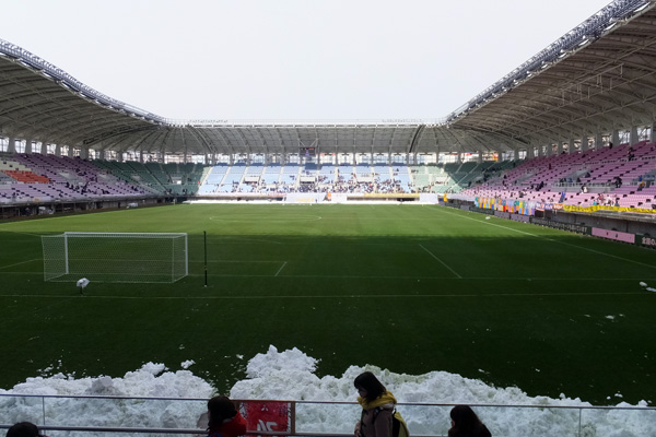 昨年天皇杯3回戦参戦で初見参だったこの場所。覚えてる覚えてる!今回は雪で真っ白。