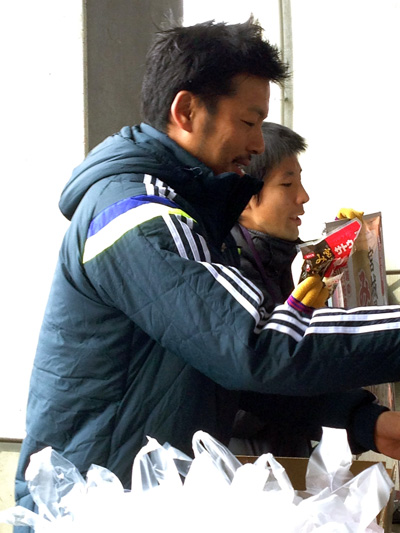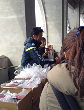 柳沢くんがスポンサーさんのお土産(お餅)を配ってました♪ ひゃー初めてこんなに近くで見た。ヨカ男衆ですねえ。