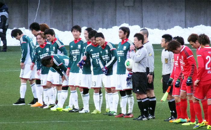 ピッチはボランティアの方々が除雪作業してくださってきれいな緑でした。