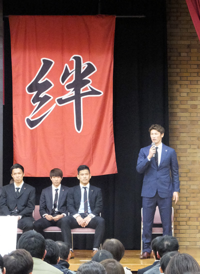 その後10組に分かれた選手がくじ引きで「火の国もりあげタイ」担当市町村をワイワイ選出。熊本に来たばっかりでいきなり苓北町とか相良村とか言われた他地域出身選手の皆さん(^^;)……がんばってね♪