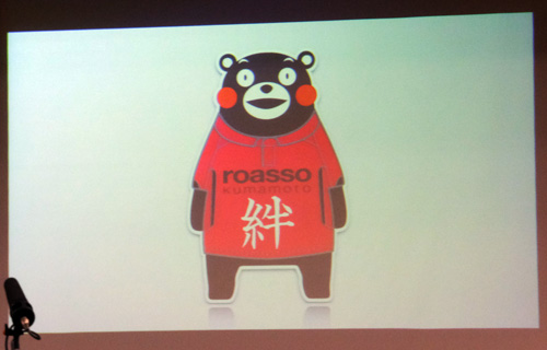 ユニにつくくまモン。今シーズンはこの絵柄でいろんなグッズ出してほしい。売り上げ伸ばしたいならそうすべき。