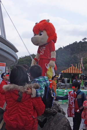 今年も変わらずフジイの唐揚げをぶら下げた子馬がなぜかお山の大将状態。ボーッと立ってるだけなのになぜかカメラ構えた両チームサポさんに囲まれておりました。