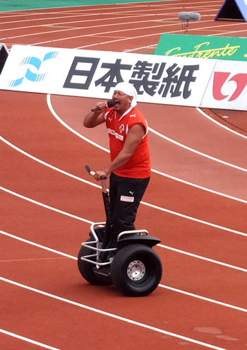 選手紹介は今年もこの人の迫力ある美声にて。DJコバがセグウェイに乗れるなんて知らなかった(笑)
