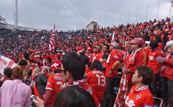 ゴール裏に陣取って風の強いピッチを見渡すと、ようやくシーズン開幕をリアルに感じることができました。