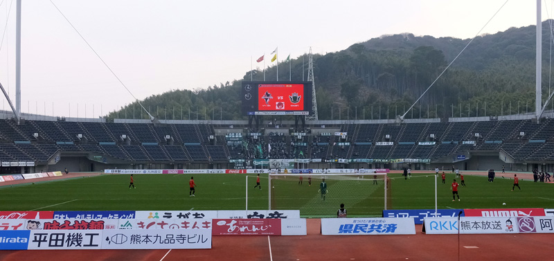 なんと水前寺競技場でゴンちゃんのハットトリック見て以来の熊本でのリーグ戦。しかも我が赤馬衆の対戦相手として戦うことになるとは。