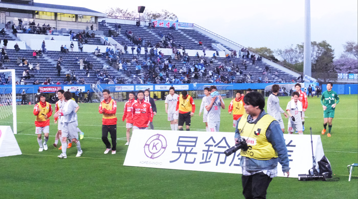 渾身の応援の真っ最中に、試合終了の笛。つんのめったように勝ったーー!と沸き始めるゴール裏。