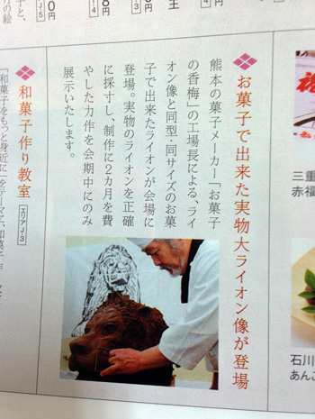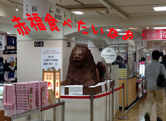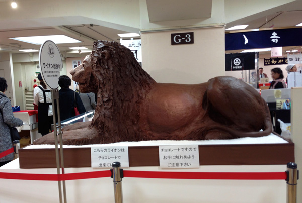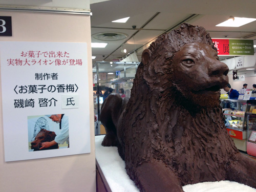 今回の遠征ミッションその2は、日本橋三越本店のライオン像100周年で開催されている銘菓展へ、お菓子の香梅の職人さん渾身の作・チョコレートライオンさんに会いに行きました。