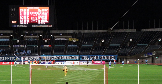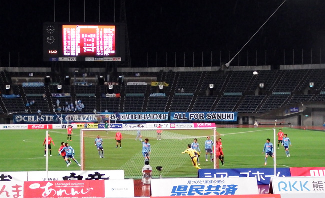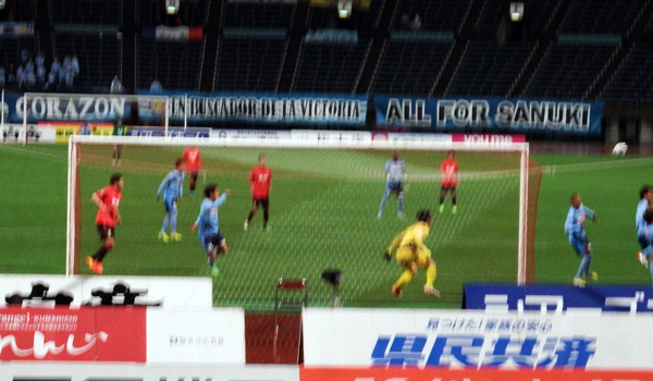 讃岐のエンジンもかかりはじめ、ボールは空中で風に左右され、地上では少し相手に持たれる印象。