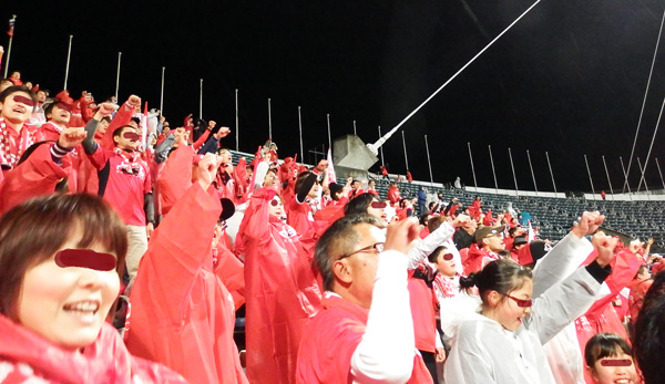 こうなったらハット狙え!という声が上がるゴール裏。イケイケドンドンじゃー!