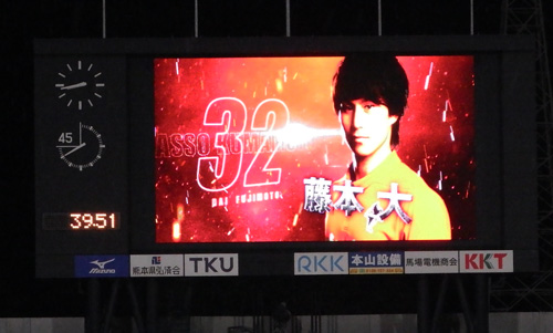 最年長クラさんと交代したのは、これまたJリーグデビューのフジモトダイちゃん! なにやらイケメンでもあり選手紹介映像がめっちゃカッコイイ。