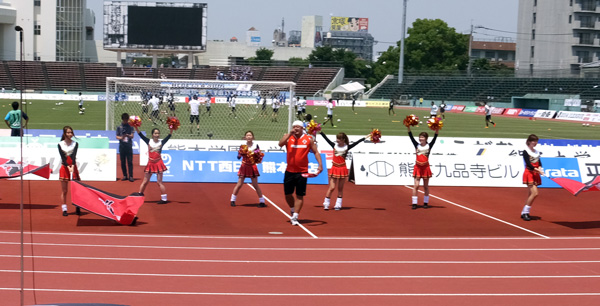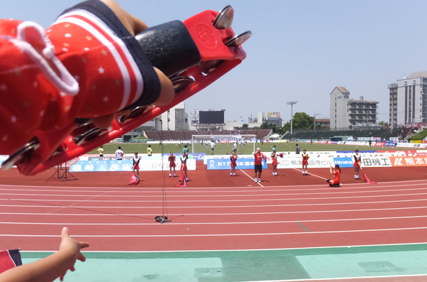 試合開始後から声を出しタンバリン叩き跳びながら後押ししてたものの、20分くらいで水分補給も効き目が薄れてきて少々意識が飛び始め、これはヤバいんじゃないか?という自覚が湧いてきたのは事実です。