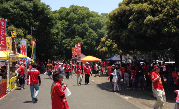 水前寺は木陰が多いけど、スタンドは直射日光満タン。