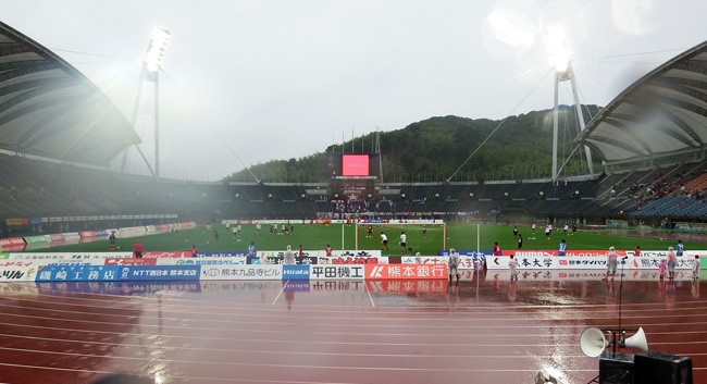 久々のうまスタ。自分にとって聖地は水前寺だけどホームはここ。雨は結局夜まで止まず。