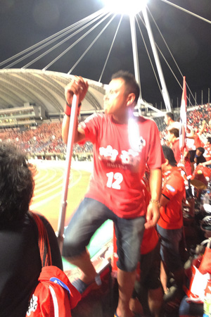 直後のゴール裏。自分も飛び跳ねながらカメラだけ後ろ向きにシャッター押すと、うまくブレブレ(笑)