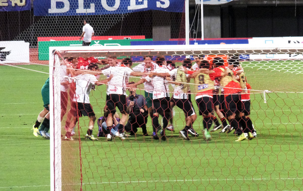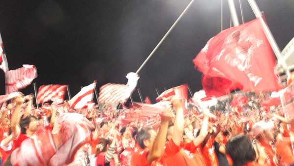 ひとりふたりじゃなく、ゴール裏にいる全員で醸し出す熱気。この一体感が今日は本当に温度差のない真っ赤な塊に思えた。