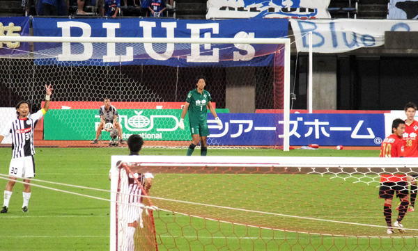 その瞬間、水戸のGKが向かって左にふいと動き、同時に反対側のネットがザン!と音を立てたんです。