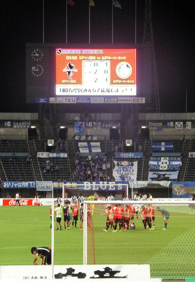 いつぶりだろう。このスタジアムで後半この時間に赤馬衆がリードする得点掲示を見るのは。