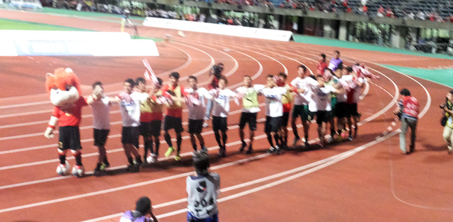 しかし興奮しまくるサポーターをよそに、10人となったその後の時間帯すら落ち着いていた赤馬衆は、かくて2ヶ月ぶりの勝利!