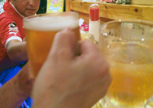 タケトミくん似の店長さんのライブで何度も何度も乾杯。アルコールなんて飲まなくても充分勝利に酔った夜となりました。