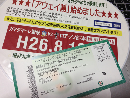 讃岐へ行くことが決まってすぐ、台風の余波で強風に吹き飛ばされそうな中、チケットを確保してきた。いつもなら風の音にもビクビクするのにやっぱりロアッソとなると自分も馬車馬(笑)