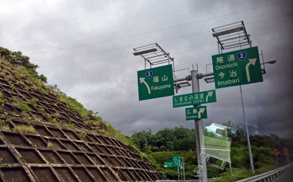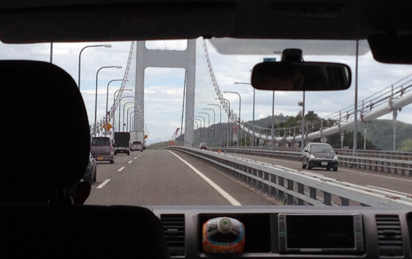雲の切れ間から青空も覗くしまなみ海道を一路四国へ。この時点で瀬戸大橋はもとより新幹線や関西方面からの高速は混乱していた模様。
