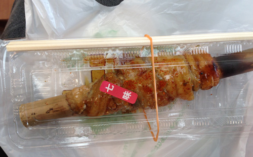 こうなれば着いたも同然の余裕ができて、SAグルメで小腹を満たす。これは太刀魚巻。七味がきいてお茶受けに最高。酒飲みは飲みたくなるだろうなと推察。